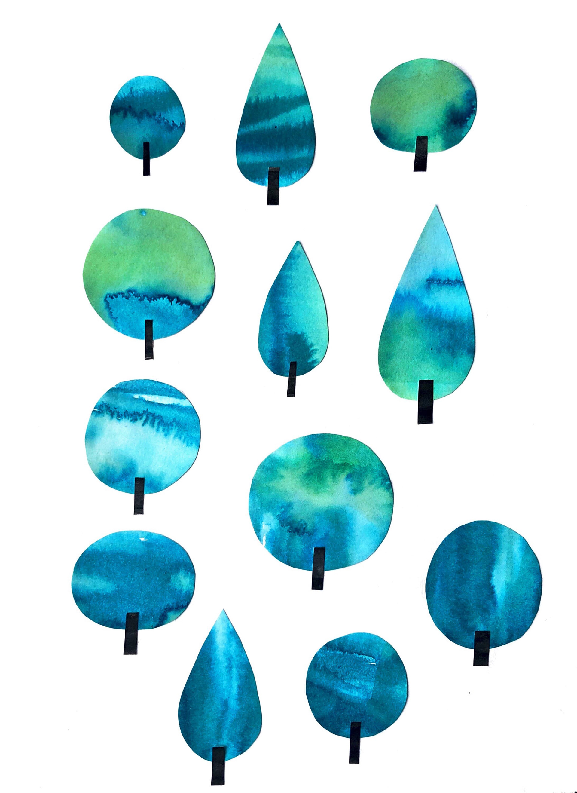 Stylised trees have become a symbol of my illustrative practice. The texture is the main element I explore through playing with inks and water and fine-tuning using pen details.