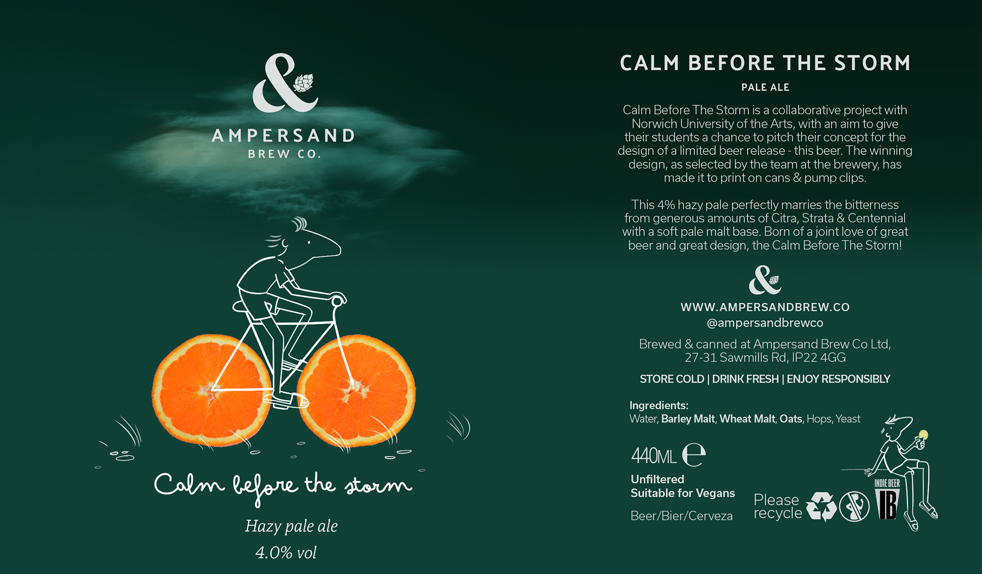 Inspired by the zesty citrus aroma of Centennial hops, orange wheels race beneath a teal sky. Calm Before the Storm- perfect for hot days, moody evenings, and well-earned moments before the rain hits.